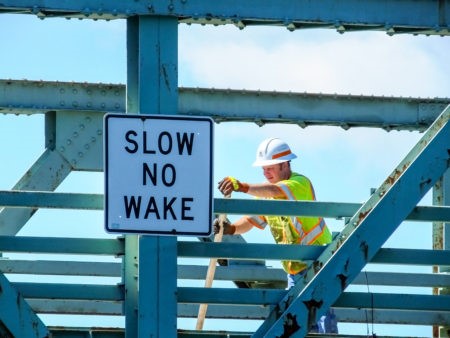 Swing bridges are unique, but the Barters Island Bridge holds a special place in the hearts of locals as it is one of the last man-powered swing bridges. For over 80 years this pony truss swing bridge has been hand-cranked and opened manually – sometimes 12 times a day in the summer months. Bridge gates are lowered by hand and while standing in the middle of the bridge the operator cranks in a circular motion as the center span of the bridge rotates on a pivot and allows boats to pass the center span on either side. It is a sight to see.
